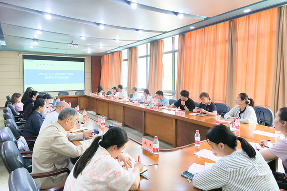 5月29日下午,学校于八号楼2楼会议室召开期中教学检查工作会议。副校长张学龙,教务处处长钱芝网、副处长瞿春燕、质量管理办负责人,各学院教学副院长,教管办负责人(教学秘书)及相关职能部门负责人参会。会议由教务处处长钱芝网主持,与会人员重点围绕本学期期中教学检查情况、督导专项检查结果、期末工作部署及下学期排课安排展开深入研讨与交流。